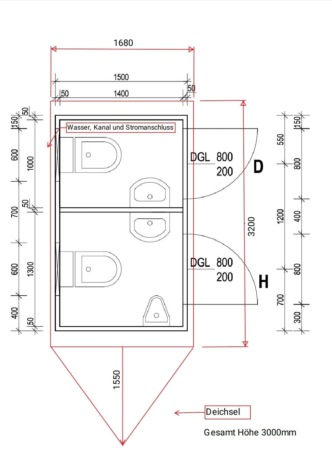 1 Stk Damen WC und 1 Stk Herren WC sowie in Possoir.