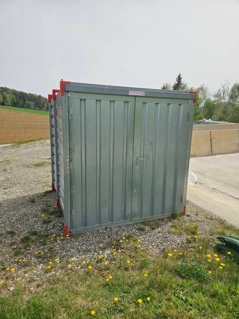 Blechcontainer mit Stahlrahmen verz. mit verzinkten Stahlblech Trapezblech verkleidet.